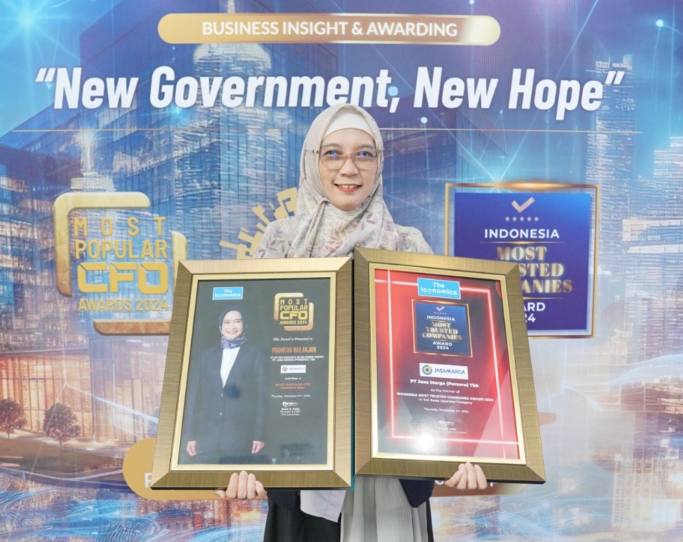 Dalam ajang yang bertemakan ‘New Government, New Hope’ ini, Jasa Marga berhasil memenangkan penghargaan Most Popular CFO Awards 2024 yang dianugerahkan kepada Direktur Keuangan & Manajemen Risiko Jasa Marga, Pramitha Wulanjani, serta Indonesia Most Trusted Companies Award 2024 dalam kategori Toll Road Operator kepada PT Jasa Marga (Persero) Tbk.